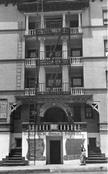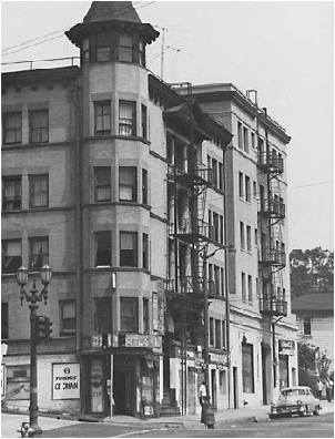 The Grand Hotel featured prominently in the film. The hotel was on the corner of Third and Grand with a delicatessen below. The hotel entrance is at the top of the stairs on the second floor.