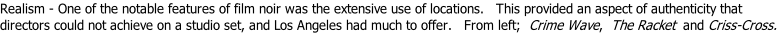 Another element that made noir different were the endings. Throughout the Depression era years of the 1930s audiences looked to the movies to provide a bit of respite from the drudgeries of the times. Indeed most of the fare during that period was light hearted melodramas with pleasant endings. Even the crime dramas were usually innocuous affairs which became known as “murder mysteries.” These were popular in series like The Thin Man, Charlie Chan, Boston Blackie and others. They were blithesome, full of wisecracking characters and had the prerequisite agreeable ending. There were exceptions of course, most notably at Warner Bros. where the gangster films ruled the day. With hard lighting, violent characters and crude treatment of women you might even say the gangster films were a forerunner of noir. But these were escapist fare with larger than life bad guys. There was a clear divide between good and evil. There was a disconnect between audiences and the gangsters depicted in these films. But in noir, the characters are more often ordinary people and their predicaments happen in real life. Fatalism is a reoccurring theme in noir and the viewer is left to ponder their own susceptibility to such events.