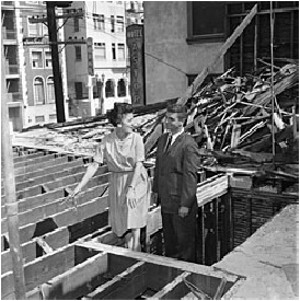 At right: Demolition begins on the Hillcrest Hotel in September of 1961.
