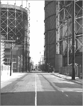 Below: Even as high rise buildings began to appear in the 1960s, the gas works still dominated the landscape.